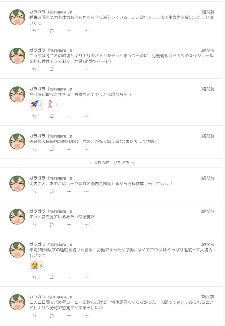 以下は12/25頃の実況ポストの様子。(オルタンシア萌え萌えクラブより抜粋)