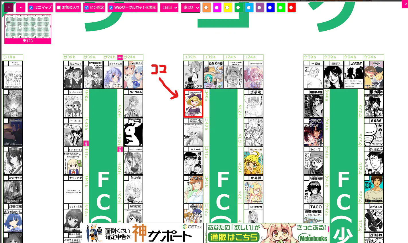 ちなみに Circle.ms のサークル地図で配置を見るとこんな感じ。