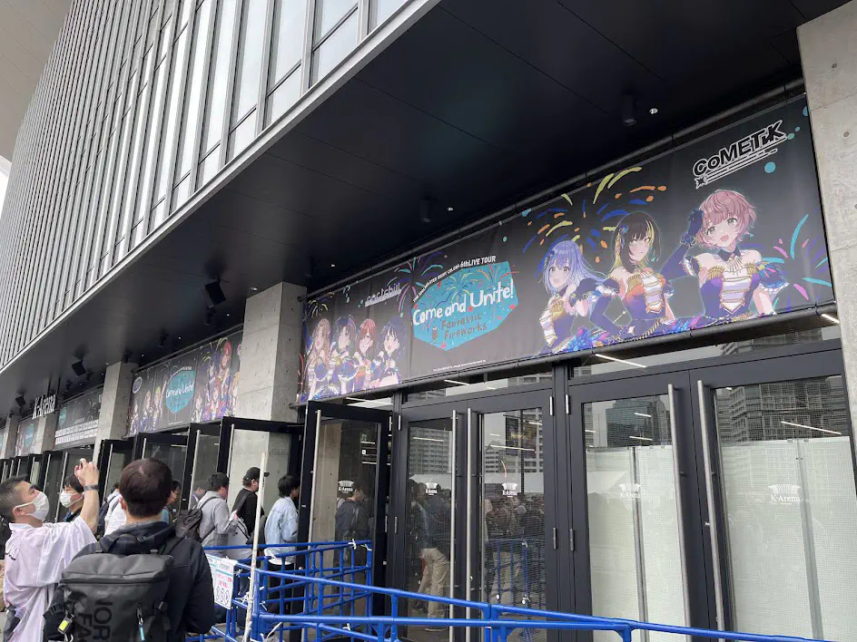 場所はKアリーナ横浜。2023年9月29日開業の出来立てホカホカなライブ会場で、収容人数は約20,000人だとか。外装・内装ともにかなり立派で、普段1000人行くか行かないか…くらいのライブ会場でクネクネしてる身からすると場違いな雰囲気に思わず緊張してしまいました。